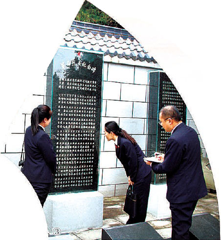 图③:今年10月30日,绥德县检察院检察官对革命烈士陵园烈士纪念设施破损修复情况进行“回头看”。