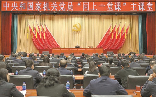 十二月八日,中共中央政治局委员、中央政法委书记陈文清在京围绕“深入学习贯彻习近平法治思想 合力开创法治中国建设新局面”为中央和国家机关党员“同上一堂课”作专题辅导。李光印摄