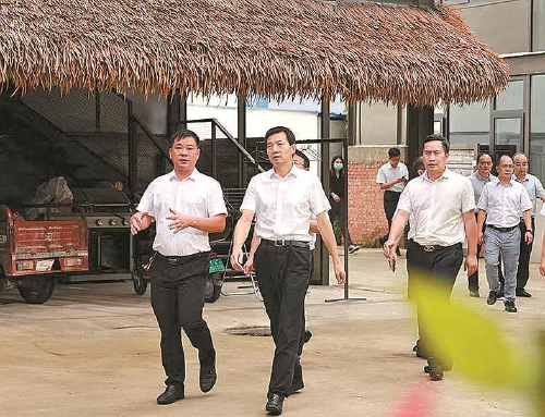 苏少洪(左)邀请企业家来到三亚市吉阳区博后村考察。